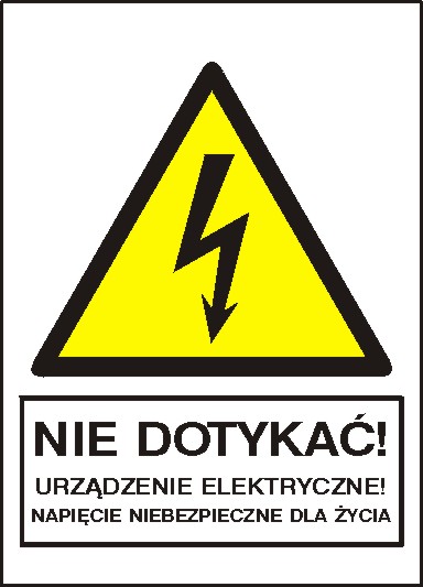 Nie dotykać! Urządzenie elektryczne! Napięcie niebezpieczne dla życia