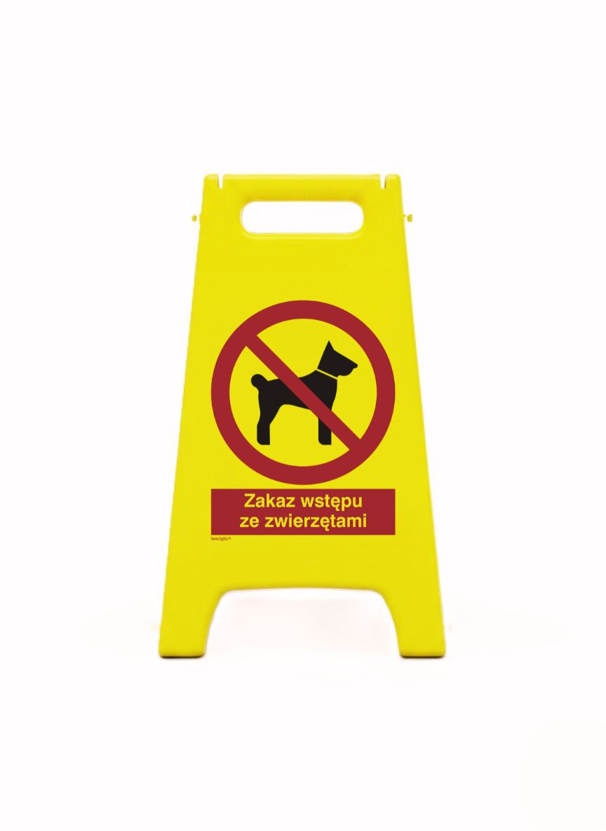 Potykacz ze znakiem: zakaz wstępu ze zwierzętam...