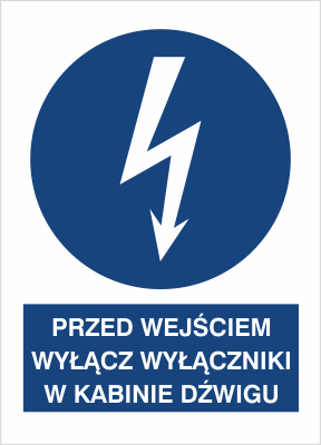 Przed wejściem wyłącz wyłączniki w kabinie dźwi...