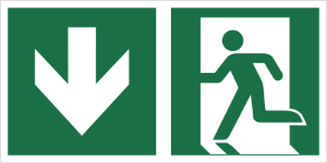 Znak łączony wyjście ewakuacyjne w lewo ze strzałką w dół (E01-DD)