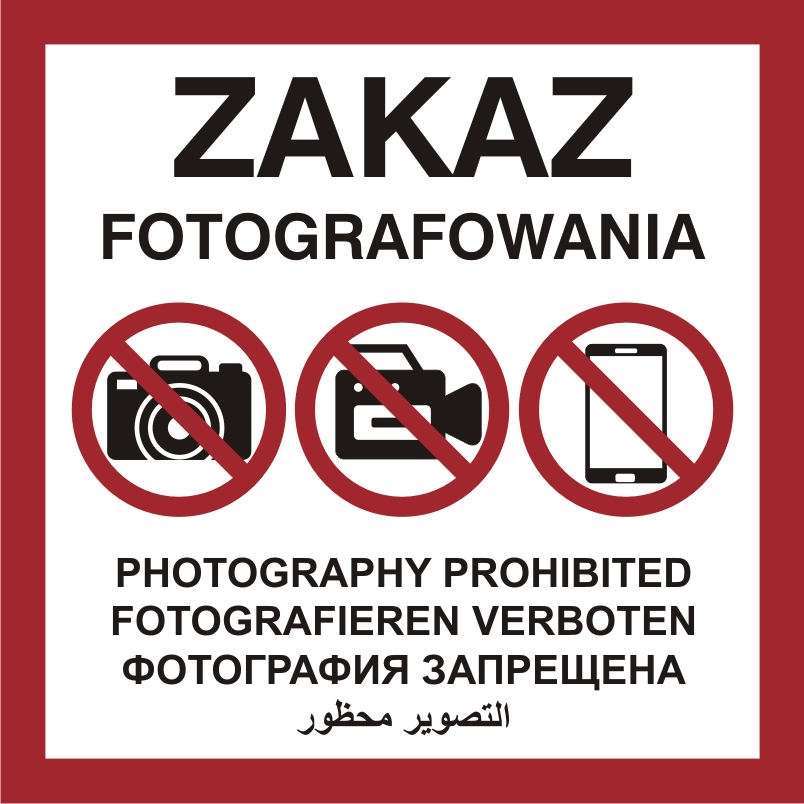 W naszym sklepie dostępny już jest do zakupu znak zakazu fotografowania zgodny ze wzorem ustalonym poprzez projekt rozporządzenia Ministra Obrony Narodowej.